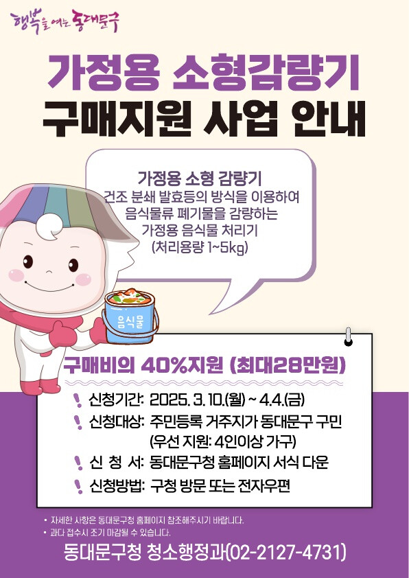 | ▲ 가정용 음식물류 폐기물 소형감량기 구매지원 홍보 이미지. (사진=동대문구청 제공) |