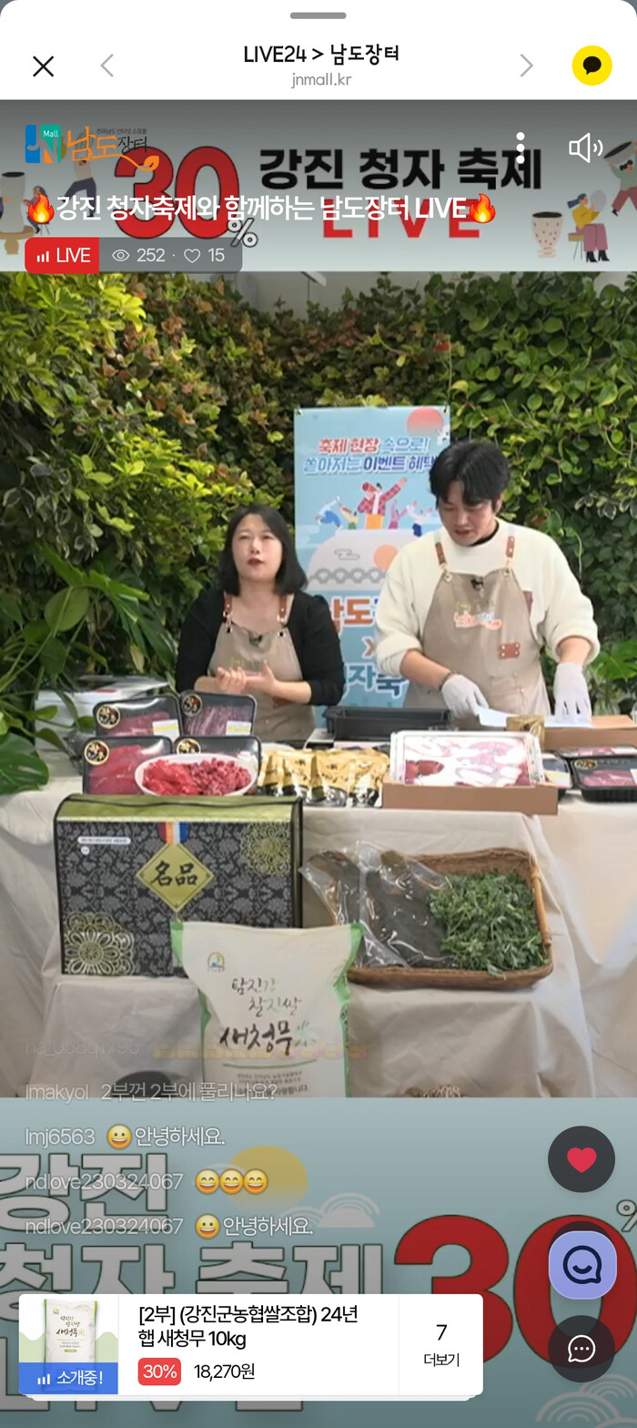 강진군 대구면 고려청자박물관 바로 옆 디지털청자박물관 1층에서 진행된 이번 라이브커머스에서는 강진의 대표 특산물인 햅쌀, 한우, 흑염소 진액, 표고버섯, 딸기, 낙지, 도다리쑥국 등 강진 제철 상품이 30% 할인된 가격에 판매됐다.