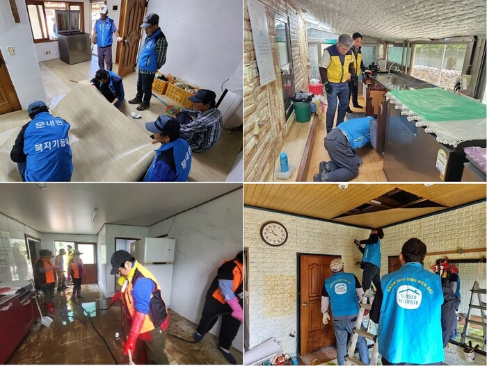 | ▲ 왼 쪽 상단부터 시계방향으로 문내복지기동대, 삼산복지기동대, 현산복지기동대, 북평복지기동대의 취약계층 및 호우피해 가옥 등에 대한 집수리와 주거환경 정리 활동 사진 / 해남군 제공 |