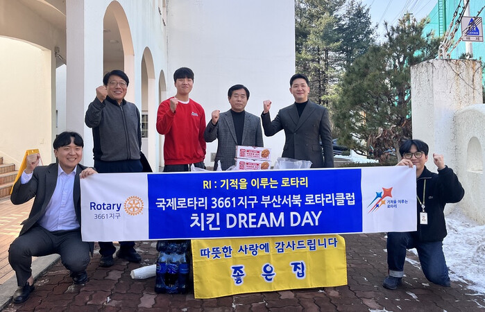 지난 14일 사회복지법인해관재단을 찾은 부산서북로타리클럽은 ‘치킨 DREAM DAY(드림데이)’ 행사를 통해 45명의 재단 아이들을 위해 치킨을 전달했다. 전달된 치킨은 꾸브라꼬숯불치킨으로, ‘치킨 DREAM DAY’는 이 꾸브라꼬숯불치킨 운영사인 ㈜외식전문기업JK의 정기 나눔 행사다.