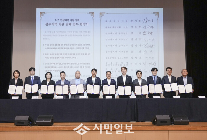 이날 보고회에서는 광주시와 자치구, 유관기관 등 12개 기관·단체가 ‘7+2 소상공인 지원 패키지’의 성공 추진을 위한 ‘골목형 상점가 광주전역 확대 업무협약(MOU)’을 체결했다.