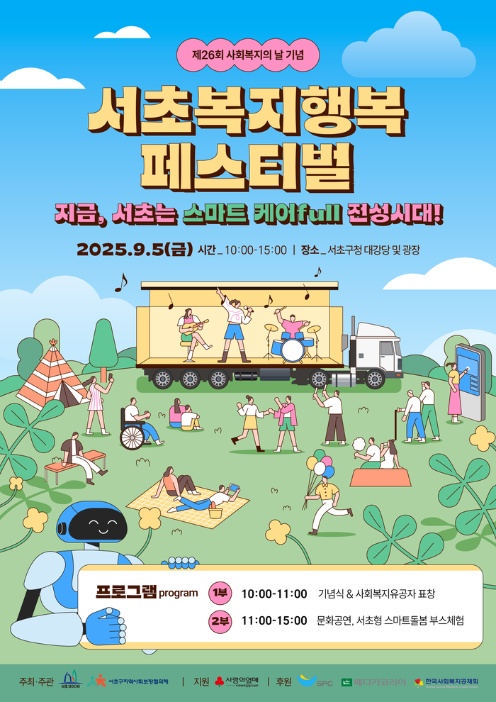[시민일보 = 박소진 기자] 서울 서초구(구청장 전성수)는 오는 5일 제26회 사회복지의 날을 맞아 구청 2층 대강당과 광장에서 ‘서초복지행복페스티벌’을 개최한다고 밝혔다.