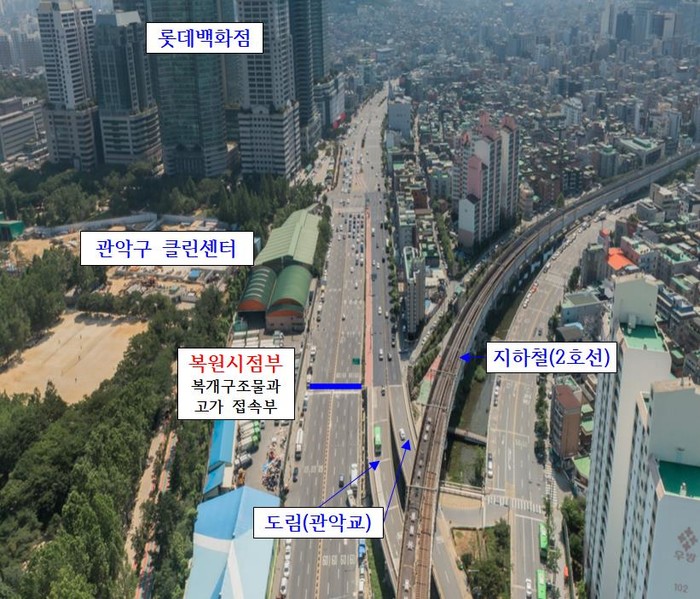 이에 구는 왕복 10~12차로로 복원 시 차로수 확보가 용이 하고, 보라매공원 및 관악자원순환센터 지하화 사업과 연계한 친수공간 조성 효과가 클 것으로 예상되는 당곡사거리~별빛내린천(도림천) 합류부 0.62km에 총사업비 720억을 투입해 오는 2029년까지 복원을 완료할 계획이다.