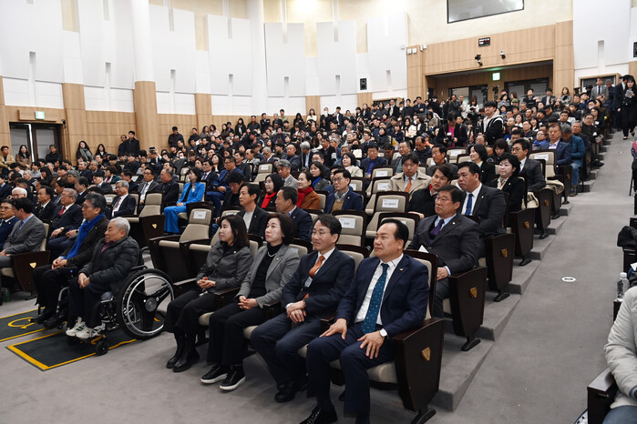 [화성=김정수 기자] 경기 화성시의회가 최근 시청 대강당에서 열린 ‘2024년 100만 화성 시민의 날’ 기념식에 참석해 시장, 국회의원, 시민 등 내·외빈 350여 명이 함께 23살을 맞은 화성시 생일을 축하했다.