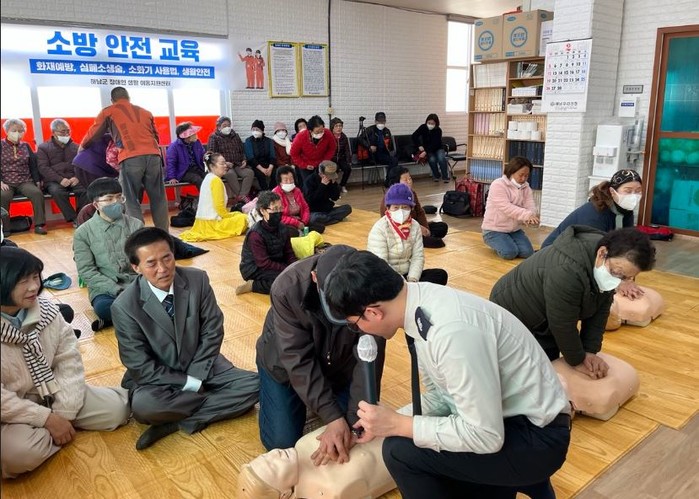 주요 내용은 ‘화재 시 올바른 신고방법’,‘응급상황 시 호각이용 구조 신호 방법’,‘비상구 대피요령’,‘심폐소생술 교육’ 등의 내용으로 진행됐다.