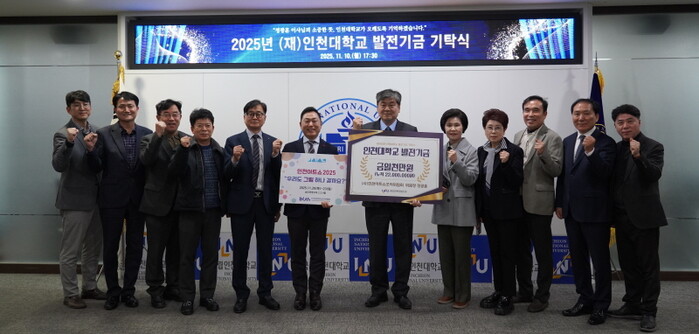 또 인천 최대의 아트페어 ‘인천아트쇼 2025’가 20일부터 23일까지 열릴 예정이다. 이인재 총장은 “기부금은 인천대학교의 미래 발전을 위한 큰 힘이 될 것”이라고 말했다.