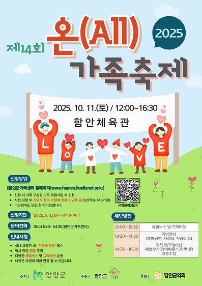 함안군가족센터 조은옥 센터장은 “온가족 축제는 세대와 가족의 형태를 넘어 모두가 함께 어울리는 자리로, 군민들이 즐겁게 참여하고 서로를 격려하는 기회가 되기를 기대한다”며 “앞으로도 가족의 건강성과 지역사회의 연대 강화를 위해 더욱 노력하겠다”라고 밝혔다.