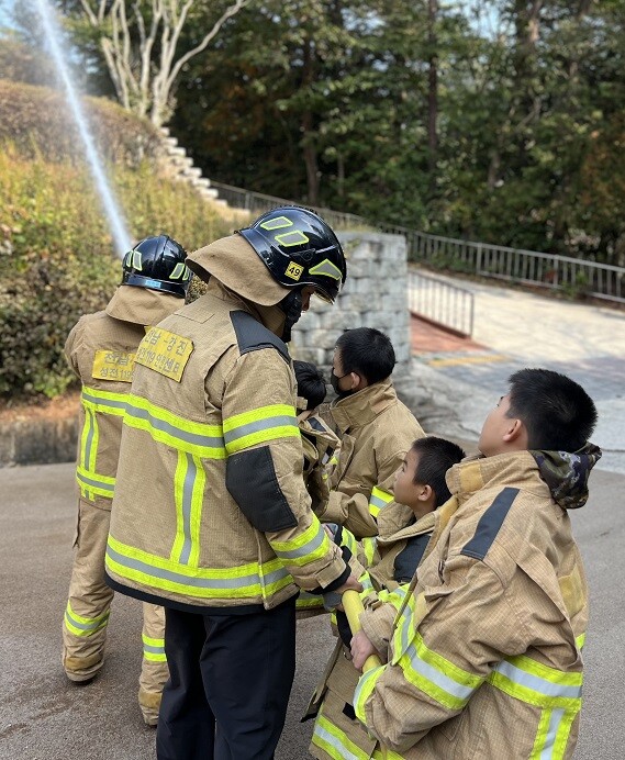 이번 소방안전교육은 ‘이동안전체험차량을 활용한 지진대피 체험’, ‘에어바운스를 이용한 화재대피 체험’, ‘소방펌프차량 방수체험’순으로 진행됐다.