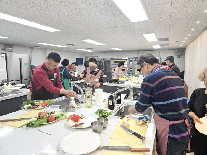 | ▲ 중장년 1인가구의 일상 회복과 사회적 관계망 회복을 위한 요리 프로그램을 진행하고 있다. (사진=노원구청 제공) |