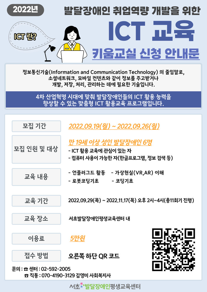 | ▲ 발달장애인을 위한 정보통신기술(ICT) 교육 안내문. (사진제공=서초구청) |