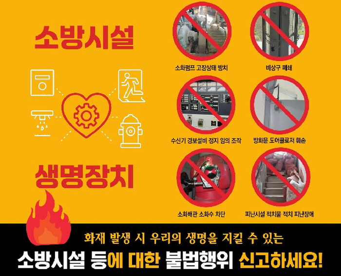 | 소방시설 및 피난시설 불법행위 근절 신고 홍보 이미지 [사진=부천소방본부] |