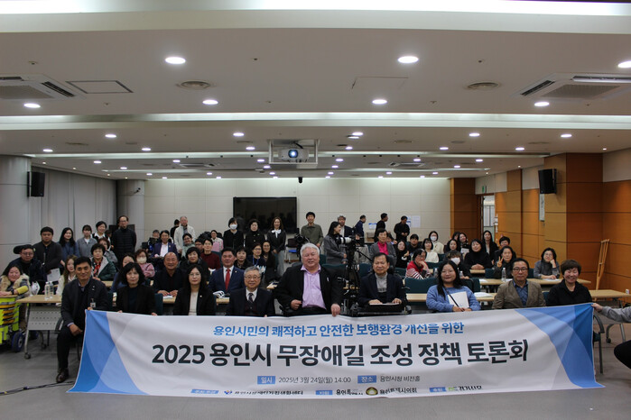 | ▲ 2025 용인시 무장애길 조성 정책토론회에서 참석자들이 기념촬영을 하고 있다. |