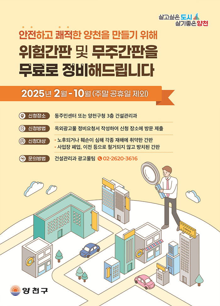 | ▲ 위험간판 및 무주간판 정비사업 안내 포스터. (사진=양천구청 제공) |