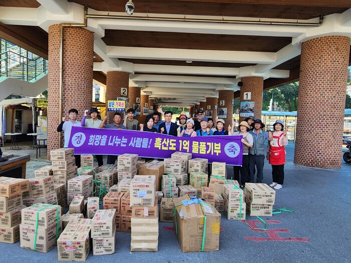 [신안=황승순 기자]흑산면(최영재 면장)은 국토 최서남단 흑산도 주민들의 소외감을 해소하고 안정적인 삶을 위해 지난 20일, 사)희망을나누는사람들(회장 김정안)로부터 1억 원 상당의 후원 물품을 전달받았다.