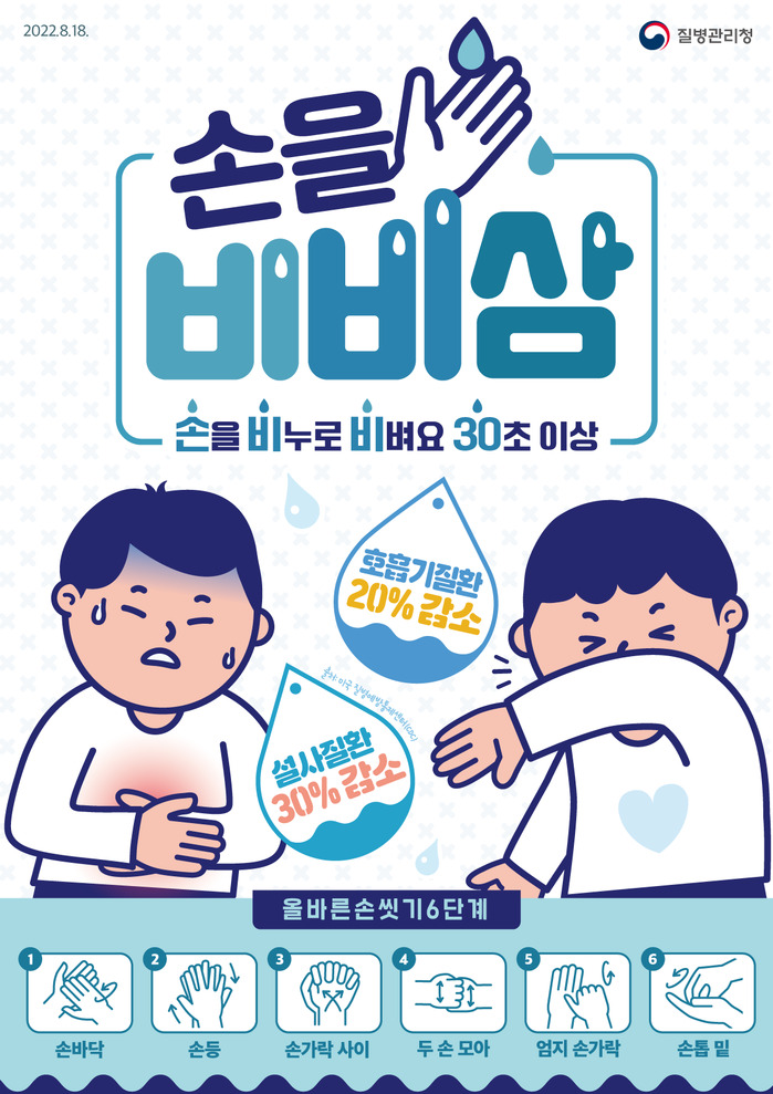 호흡기 분비물로 전파되는 수두·유행성이하선염은 단체생활을 하는 15세 이하에서 발생빈도가 높고, 전염력도 커 예방하려면 올바른 손 씻기와 기침 예절 준수, 실내 환기 생활화가 필수다.