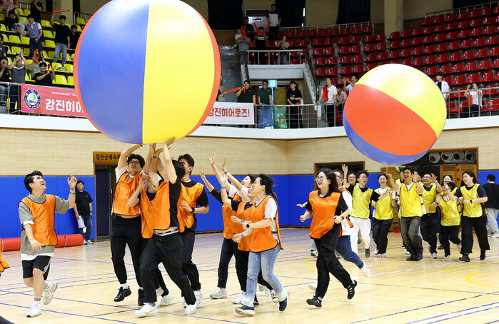 5개 팀(다산드림즈ㆍ그린파워ㆍ청자웨이브ㆍ영랑하모니ㆍ강진히어로즈)으로 나뉘어 진행된 팀빌딩 경기는 조직 간 협력을 높이고, 공직자 개개인에게 활력을 불어넣는 뜻깊은 시간이 됐다.