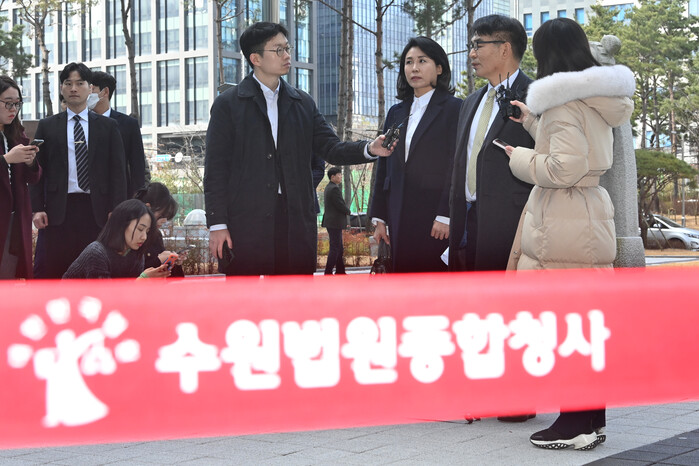 2022년 제20대 대통령 선거와 관련한 공직선거법 위반 혐의로 재판에 넘겨진 더불어민주당 이재명 대표의 배우자 김혜경씨가 26일 오후 경기 수원지법에서 열린 첫 재판에 출석하기 위해 법원으로 이동하고 있다.