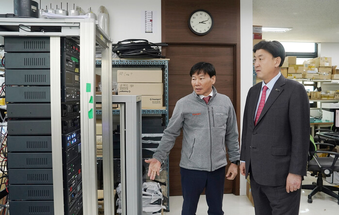 방세환 경기 광주시장이 최근 두 차례에 걸쳐 지역내 주요 기업을 방문했다. 이번 기업 방문은 기업의 애로사항을 청취하는 등 현장 중심의 소통을 강화하기 위해 마련했다. 사진은 방 시장이 (주)화진티엔아이에서 생산 현장을 둘러보는 모습. (사진=광주시청 제공)