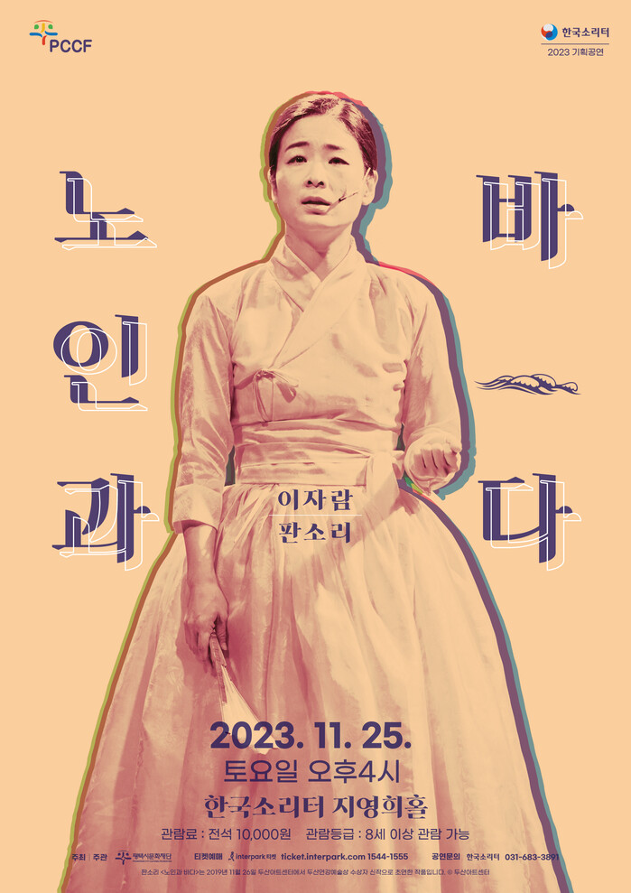 <노인과 바다>는 제6회 두산연강예술상 수상자 이자람의 신작이며 어니스트 헤밍웨이 『노인과 바다』를 판소리로 재창작한 작품이다. 이자람은 <사천가>, <억척가>, <이방인의 노래>, <추물/살인> 등의 작품으로 국내외에서 활발하게 활동하며 희곡이나 근현대 소설을 판소리의 다양한 소재와 형식으로 개발하는 작업을 꾸준히 선보이고 있다. 이번 공연에서는 관객들도 단순히 이야기를 듣는 것을 넘어 소리꾼 이자람과 함께 호흡을 맞추며 무대를 만들어갈 예정이다.