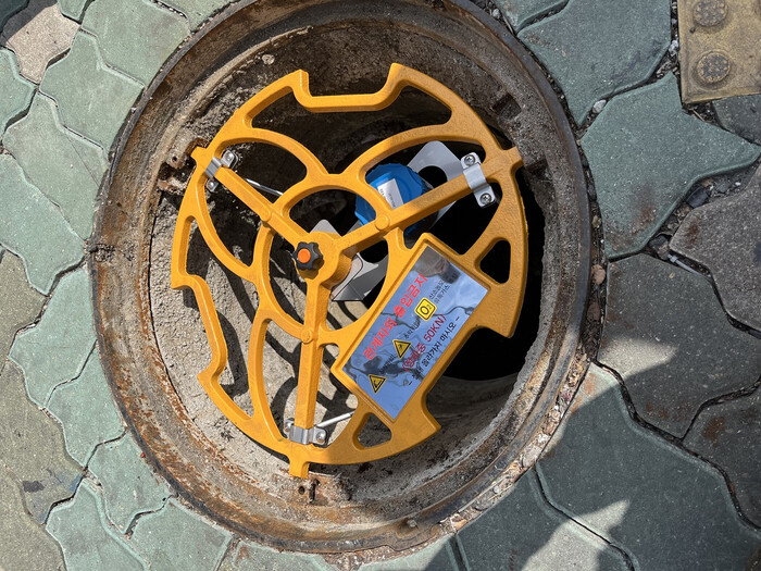 | ▲ IoT 센서가 설치된 맨홀. (사진=광진구청 제공) |