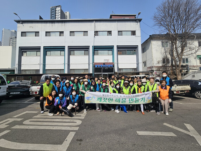 경기 과천시 별양동이 24일 지역내 사회단체와 함께 ‘새봄맞이 깨끗한 마을 만들기’ 대청소를 실시했다. 이번 환경정화 활동에는 별양동 주민자치위원회, 통장단, 체육회, 부녀회 등 60여명이 참여해 불법 투기물과 쓰레기를 수거하며 마을 환경 개선에 힘을 보탰다. 사진은 참여자들이 기념촬영을 하고 있는 모습. (사진=과천시청 제공)