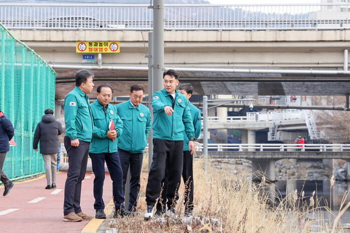 이번 안전 점검은 겨울철 하천 시설물에 발생할 수 있는 위험 요소를 사전에 제거하고 주민 안전사고를 예방하기 위해 추진됐다. 점검에는 오언석 구청장을 비롯해 관계 직원들이 동행했다.