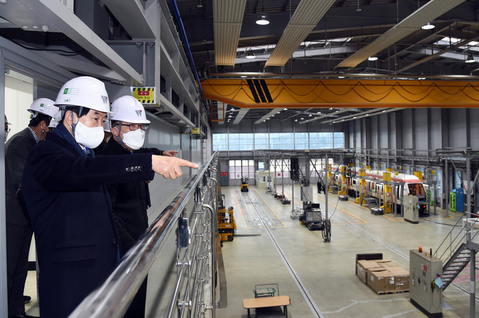 안병용 경기 의정부시장은 최근 의정부경전철 차량기지에 방문해 운행선로, 임시역사 등 중대재해가 발생될 수 있는 주요 시설물과 관계 법령에 따른 안전수칙 준수 여부 등을 점검했다. 사진은 이날 안병용 시장(왼쪽)이 관계자들과 현장점검을 하는 모습. (사진제공=의정부시청)