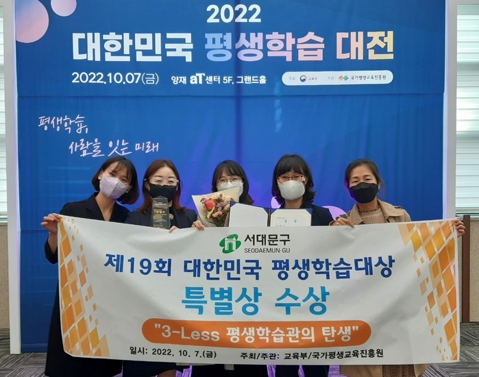 [시민일보 = 홍덕표 기자] 서울 서대문구(구청장 이성헌)는 최근 교육부가 주최하고 국가평생교육진흥원이 주관한 '제19회 대한민국 평생학습대상'에서 '3-Less 평생학습관' 운영 성과를 인정받아 특별상을 수상했다고 11일 밝혔다.