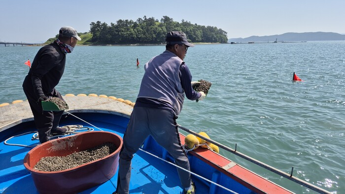 [완도=김우정 기자] 전남 완도군은 수산자원 조성을 위해 최근 두 차례에 걸쳐 꼬막과 해삼 종자 총 32만미를 완도 해역에 방류했다.