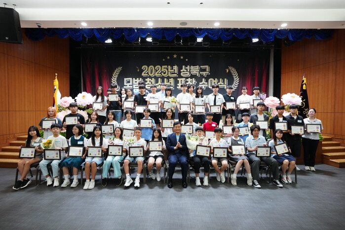 [시민일보 = 문민호 기자] 서울 성북구(구청장 이승로)는 최근 구청 4층 아트홀과 1층 잔디마당에서 '2025 모범 청소년 표창 수여식'과 '2025년 세계 청소년의 날' 기념행사를 개최했다고 12일 밝혔다.
