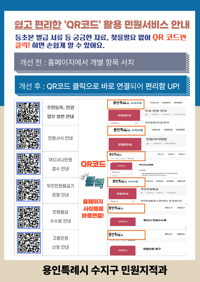 | ▲ 용인특례시 수지구, QR코드 활용 민원안내 서비스 홍보 포스터. |