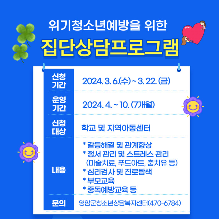| ▲ 영암군, 집단상담프로그램 운영 홍보 이미지 / 영암군 제공 |