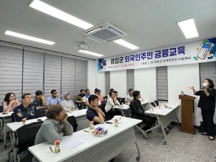 [영암=정찬남 기자] 전남 영암군(군수 우승희)이 지난 11일 영암군외국인주민지원센터에서 이주노동자, 외국인 유학생, 결혼이민자 등 20여 명이 참석한 가운데 ‘외국인주민 금융교육’을 실시했다.