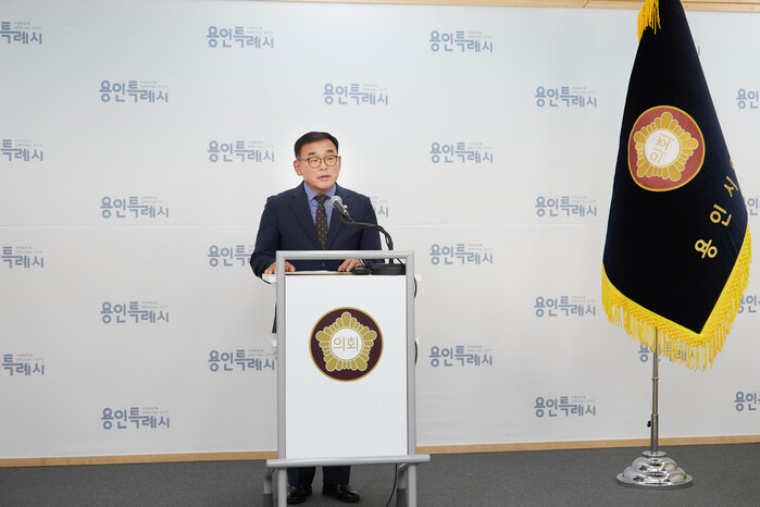 | ▲ 용인특례시의회 윤원균 의장, 사과 성명서 발표 |