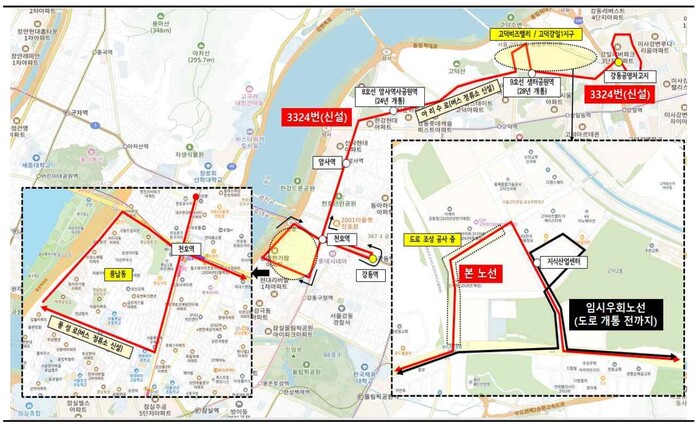 구는 이외에도 둔촌동 올림픽파크 포레온(구 둔촌주공아파트)의 입주시 출퇴근 교통 수요가 대폭 증가할 것에 대비해 시내버스 3323번 노선을 조정하는 안도 공개했다.