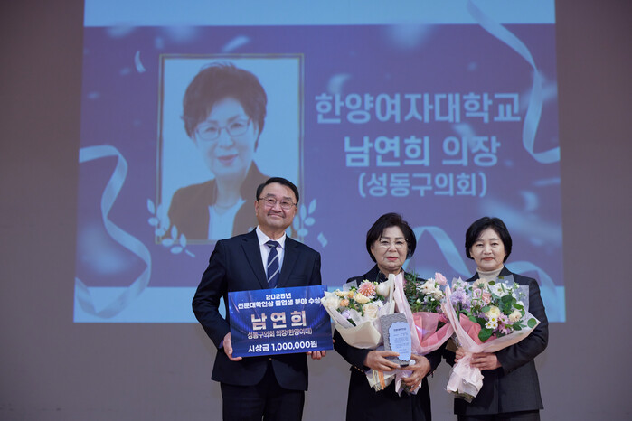 [시민일보 = 박소진 기자] 남연희 서울 성동구의장이 최근 숭의여자대학교 음악당에서 열린 한국전문대학교육협의회 주최 ‘2025년 전문대학인상 시상식’에서 졸업생 부문 수상자로 선정됐다.