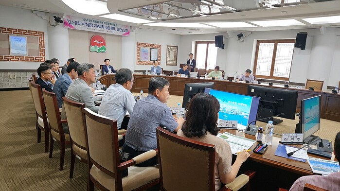 보고회에서는 이각균 부구청장, 관련 부서장, 외부 자문위원 등 25명이 참석한 가운데, 용역 진행 상황과 방향을 점검하고, 탄소중립 실현을 위한 부문별 구체적 실행방안에 대해 논의했다.