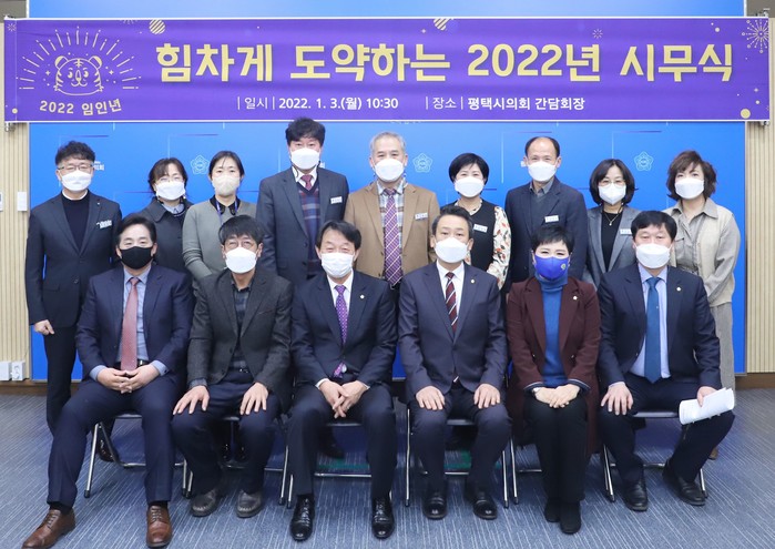 [평택=오왕석 기자] 평택시의회(의장 홍선의)는 3일 시의회 의장실에서 2022년 시무식을 갖고 새해 의정활동의 의지를 다졌다.