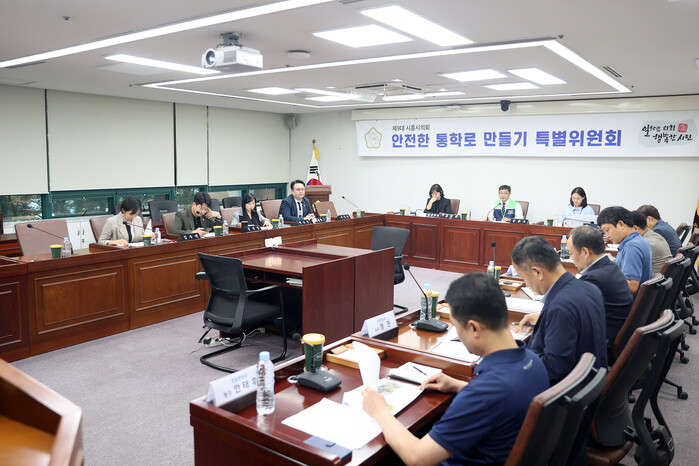 | 시흥시의회 안전한 통학로 만들기 특별위원회는 지난 4일 통학로 개선사업 관련 논의를 진행했다. 사진제공=시흥시의회 |