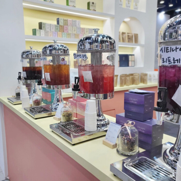 ‘2023 서울카페쇼’ 시작과 함께 출시한 시티나이트 리프레쉬, 모먼트 포 유, 루비드 로맨스, 멜로디어스 퍼즈 등 프리미엄 블렌딩티 4종은 현장에 있던 방문객의 이목을 집중시켜 전 품목 품절에 이를 정도로 긍정적인 반응이 쇄도했다고 업체 측은 전했다.