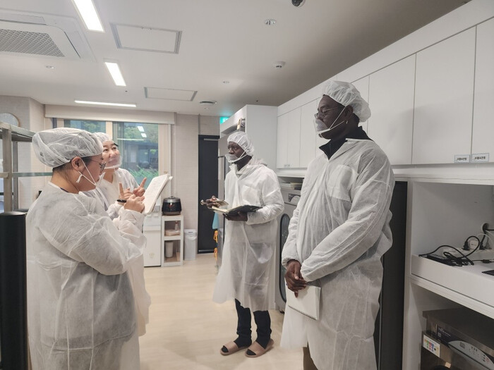 세네갈 방문단은 ‘용인시 어린이·사회복지급식관리지원센터’의 운영 시스템을 보고, 위생교육 실습도 체험했다.