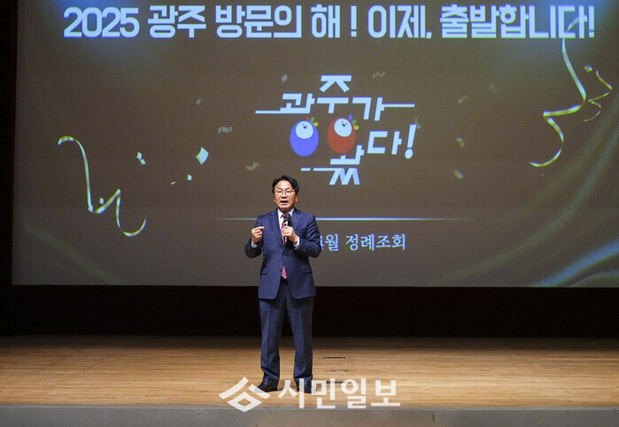 [광주=정찬남 기자] 강기정 광주광역시장이 1일 오전 시청 대회의실에서 열린 4월중 정례조회에 참석해 인사말을 하고 있다./광주광역시 제공