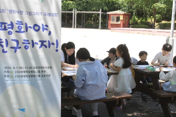 이날 행사에는 김포시내 초중고 학생 30여명이 참가해 ‘전쟁으로 고통받는 친구들에게 전하는 평화의 마음’을 주제로 각자의 평화 메시지를 그림으로 표현했다. 올해로 6회째를 맞은 이 대회는 평화 문화 전파의 일환으로 매년 어린이와 청소년들에게 평화의 세상을 그림으로 표현하는 기회를 제공한다.