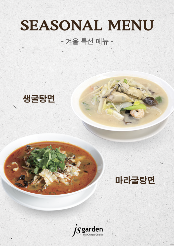 시원하고 얼큰한 국물의 ‘굴탕면’과 얼얼한 맛으로 꾸준한 사랑을 받고 있는 ‘마라굴탕면’ 두가지를 선보인다. 굴과 각종 야채를 육수에 우려낸 시원한 국물, 탱글한 굴, 그리고 쫄깃한 면의 식감이 더해진 것이 특징이다.