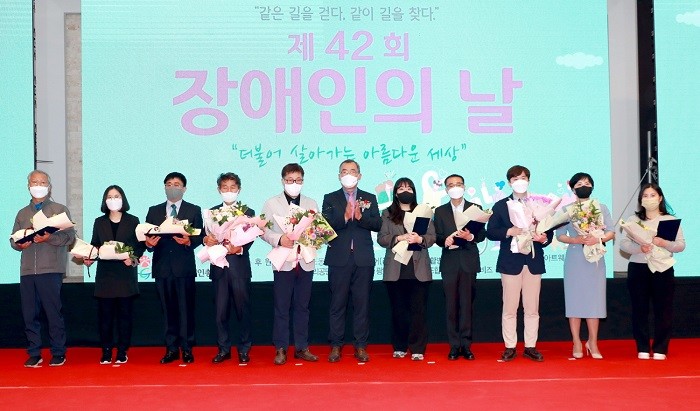 특히 오랜 기간 장애인복지를 위해 헌신하고 장애인과 함께하는 마음으로 세상을 움직여온 장애인복지 분야 유공자 표창 25명, 공로패 2명, 감사패 2명에 대한 시상이 진행됐다.