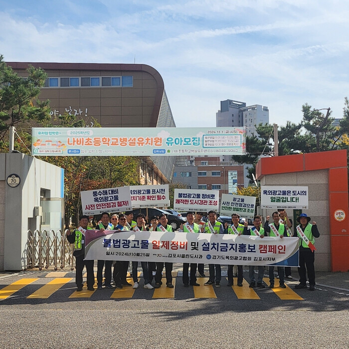 [김포=문찬식 기자] 경기 김포시가 최근 경기도 옥외광고협회 김포시지부와 김포시 클린도시과 직원 등 20여명이 참여한 가운데 깨끗하고 안전한 교육환경 조성을 위한 학교 주변 불법광고물 일제정비 및 캠페인을 실시했다.