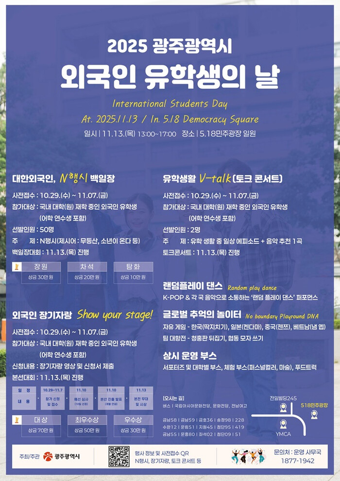김기숙 교육청년국장은 “이번 행사가 외국인 유학생들이 지역 문화 속에서 활발히 교류하고 시민과 소통하는 기회가 되길 바란다”며 “광주가 세계와 소통하는 다문화 중심도시로 자리매김할 수 있도록 최선을 다하겠다”고 말했다.