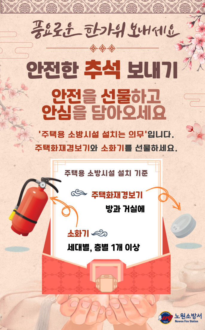 [시민일보 = 박소진 기자] 노원소방서는 ‘추석 명절 주택용 소방시설 선물하기’ 캠페인을 집중 전개한다고 23일 밝혔다.