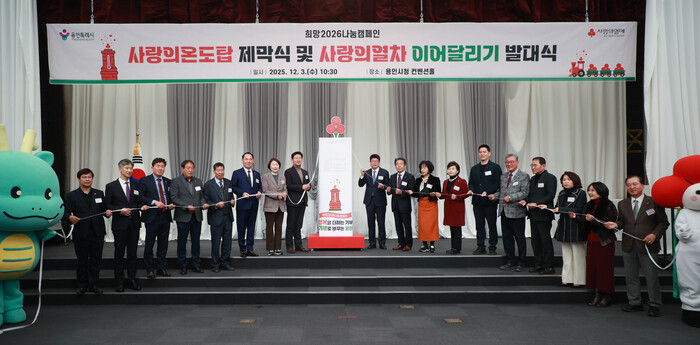 [용인=오왕석 기자] 용인특례시(시장 이상일)는 3일 시청 컨벤션홀에서 ‘희망 2026나눔캠페인 사랑의 온도탑제막식 및 사랑의 열차 이어달리기 발대식’을 개최했다.