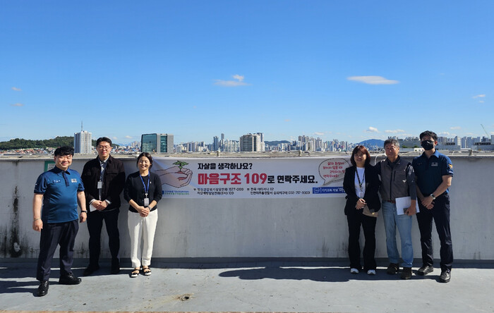 이에 센터는 미추홀경찰서 범죄예방대응과(생활질서계), 숭의지구대와 협력해 사업을 추진했으며, 자살 시도 위험이 큰 지역 내 고층 건물 관계자들을 대상으로 건물 옥상 출입문 관리의 중요성 및 자살 위험성에 대한 인식 개선을 안내했다.
